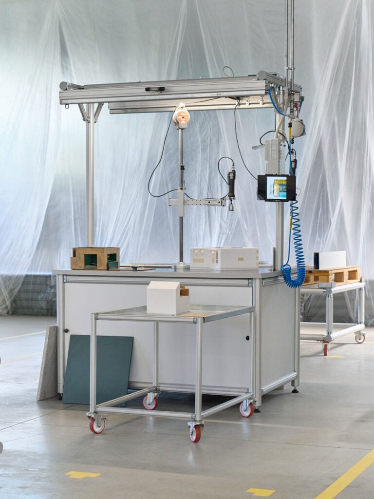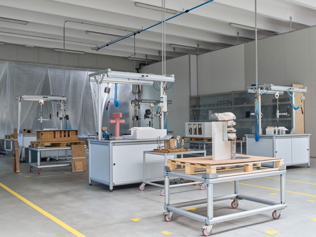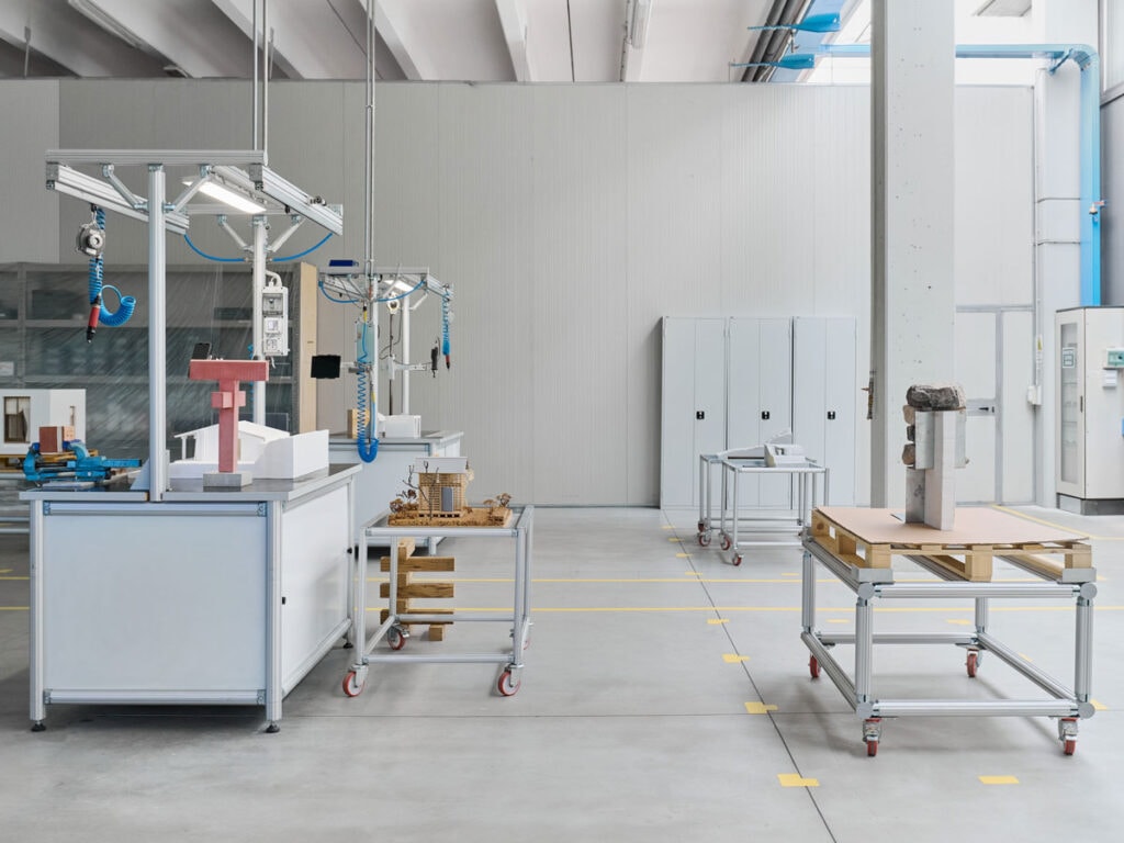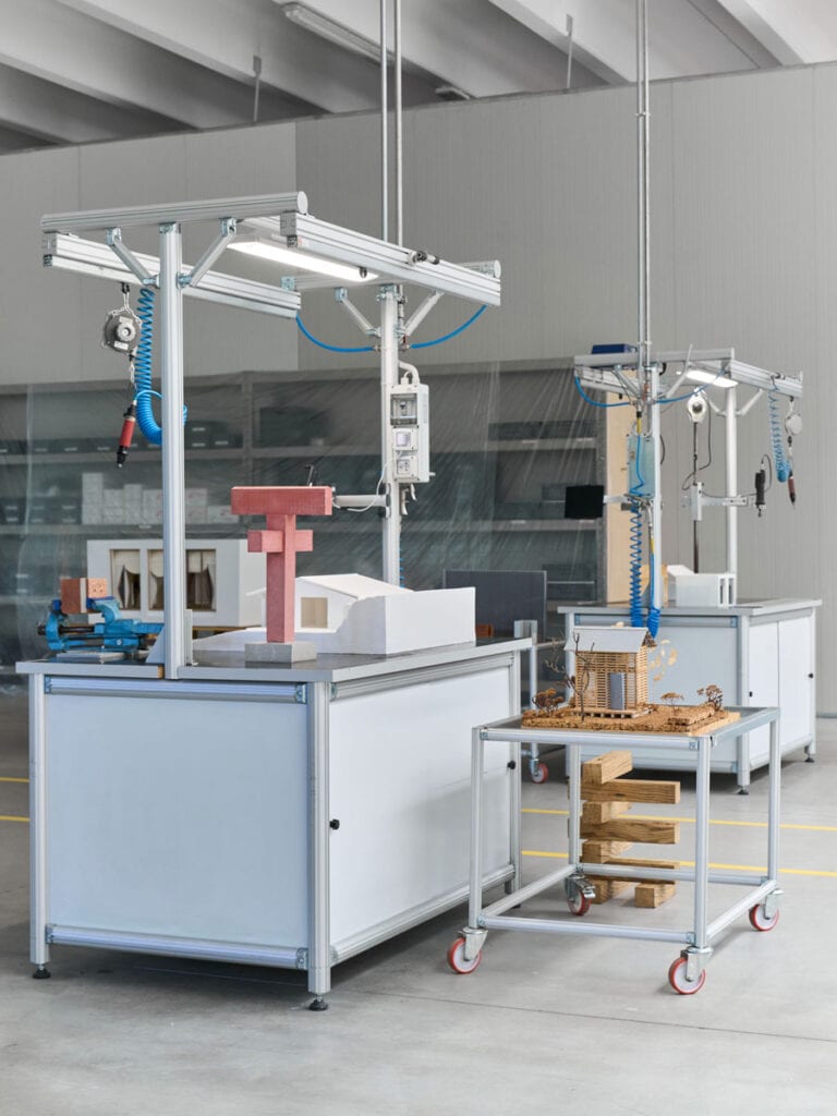 Staged within the production and assembly area of QuadroDesign, the exhibition presented a selection of fifteen projects, drawn from the sixty-one featured in the book, with the aim of revealing a specific moment in the design process: the work expressed through models, mock-ups, and material samples. Organized thematically, the fifteen examples explored the ordinary beauty embedded in apartments (AMAA, Campomarzio, Tenet), in roofing for public spaces (Didonè Comacchio, Enrico Scaramellini), in auxiliary spaces of the home (Camilla De Camilli, ErranteArchitetture, Lorenzo Guzzini, MOTU, Studiospazio, VG13), in retail spaces (Supervoid, Fondamenta), and in factories (Carlana Mezzalira Pentimalli, Enrico Molteni).