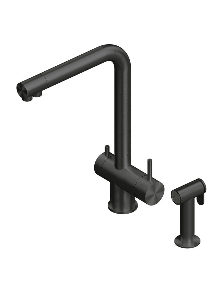Water treatment mixer 3 ways. Split internal spout. Side spry stainless steel handshower.