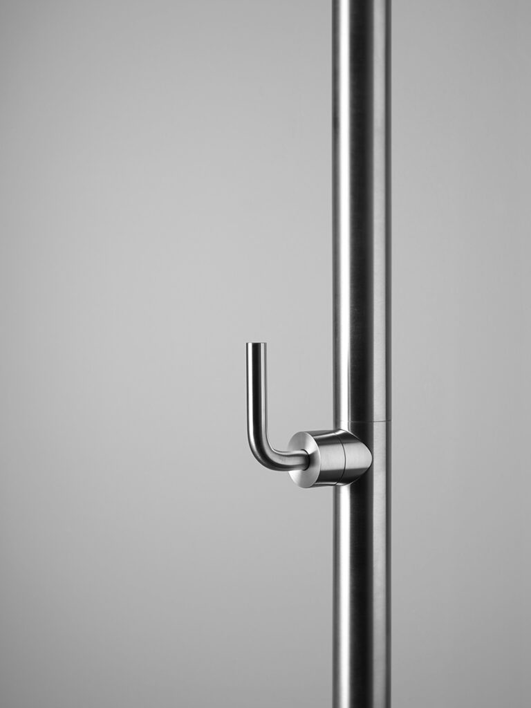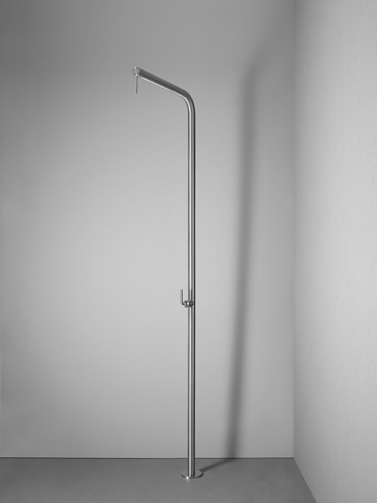 Outdoor shower with rain adjustable shower head and hydroprogressive mixer.