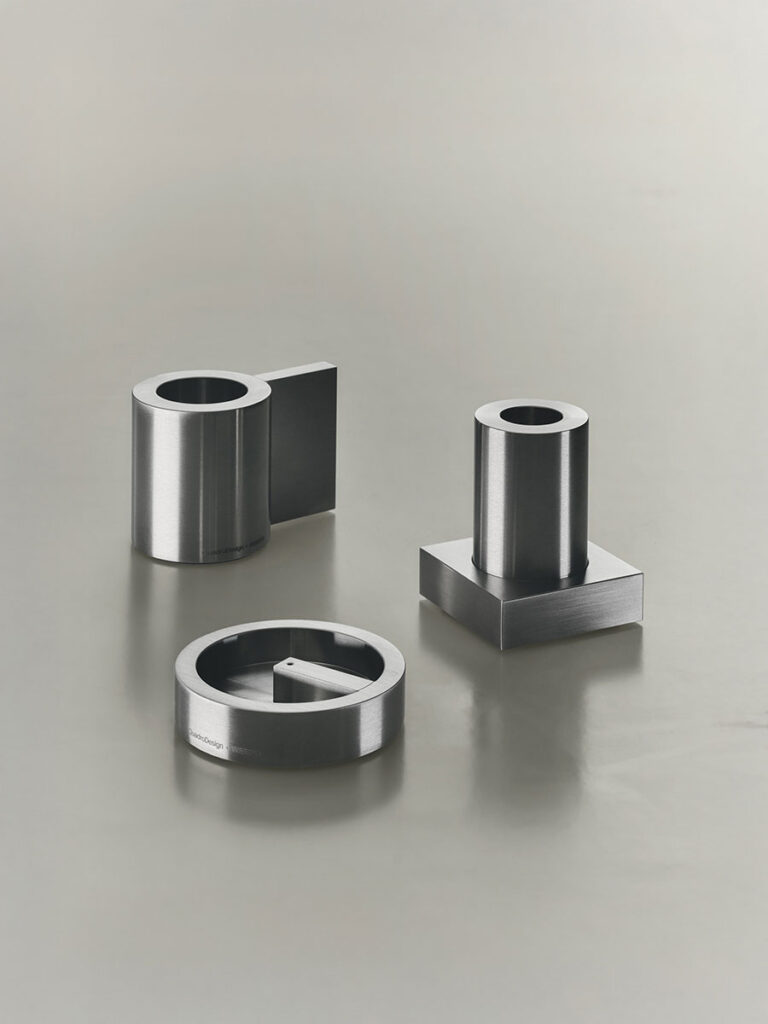 Haze is a collection of three stainless steel objects designed for burning incense and aromatic woods. Designed by Simone Bonanni, the collection represents the first collaboration between QuadroDesign and the Milanese brand Weed’d, combining the precision of CNC-machined steel geometric volumes with a warmer, more intimate, and meditative dimension. The three objects appear as small domestic architectural features, designed to frame and elevate moments of relaxation and self-care, in keeping with the values that have always guided Weed’d and which QuadroDesign interprets through the solid, contemporary language of steel. Code OG-WE001.