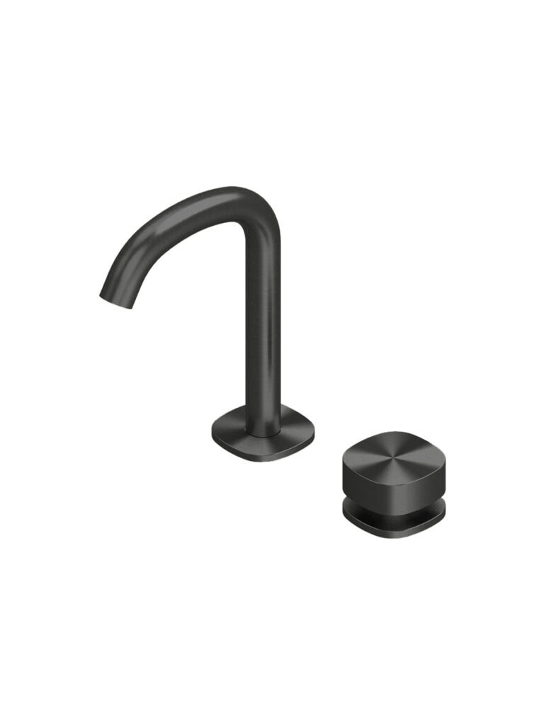 Traditional two-hole countertop mixer group with swivel spout.