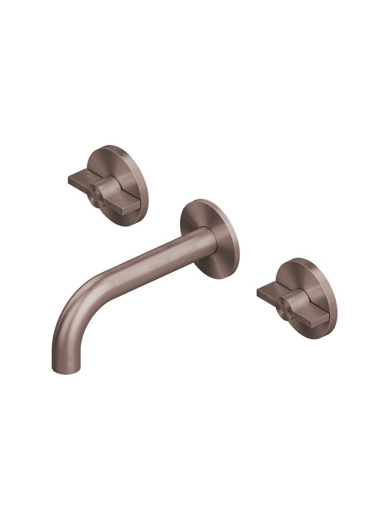 Wall mounted dual handle mixer with spout.