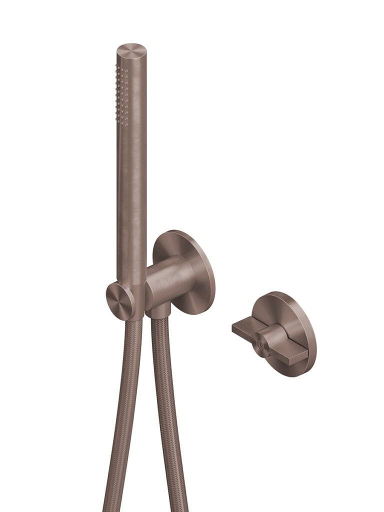 Wall mounted hydroprogressive mixer with handshower kit.