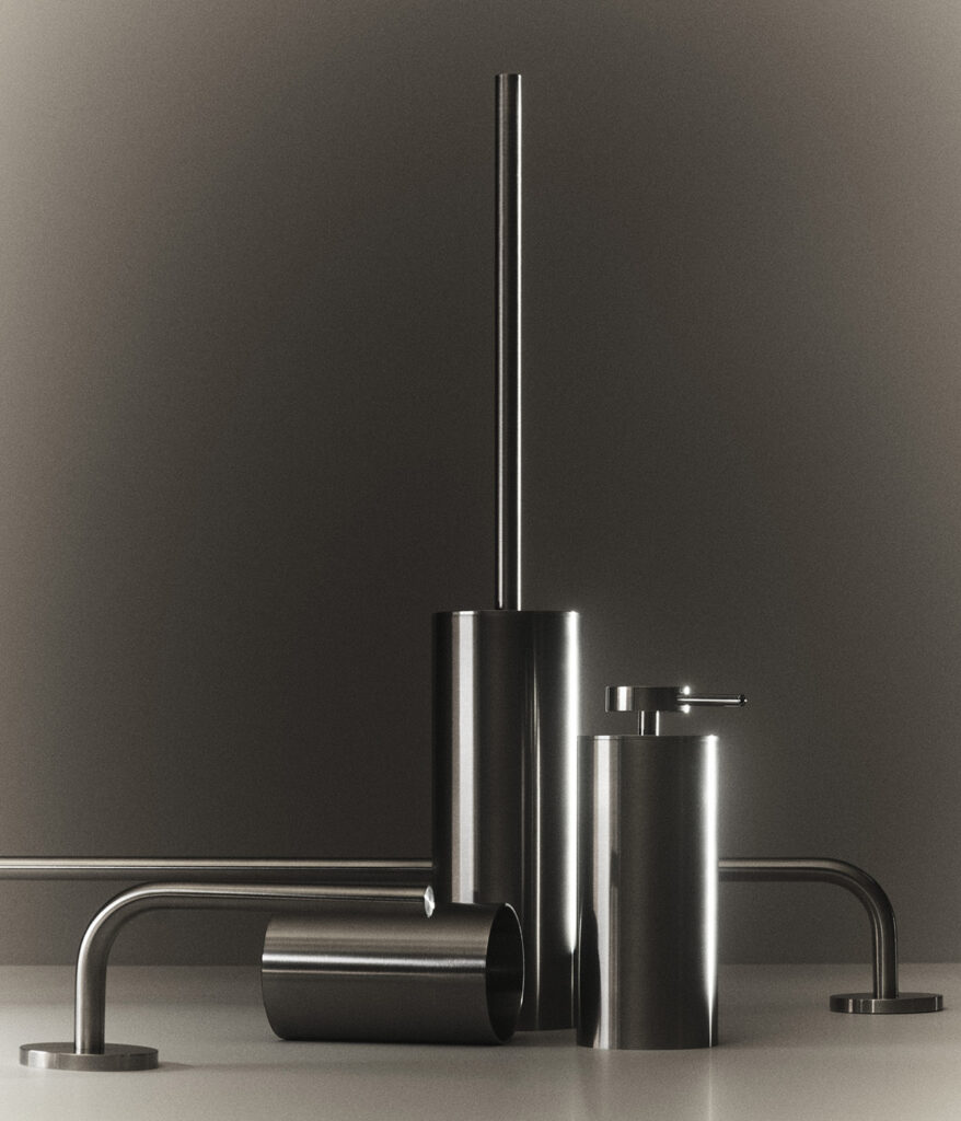 A14 è una collezione di accessori per il bagno disegnata da Maddalena Casadei, sviluppata a partire da un unico elemento strutturale: il tubo in acciaio inox dal diametro di 14 mm. Realizzata in acciaio inossidabile AISI 316L, la collezione comprende elementi da appoggio e da parete ed è progettata secondo criteri di coerenza formale, standardizzazione produttiva e funzionalità.