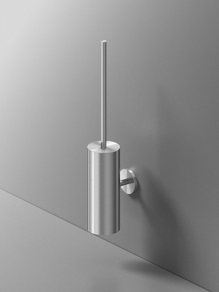 Portascopino a parete con contenitore removibile.