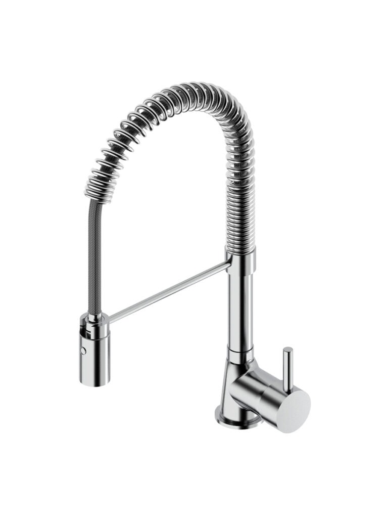 Miscelatore cucina con canna girevole e doccetta in ottone due getti con molla.