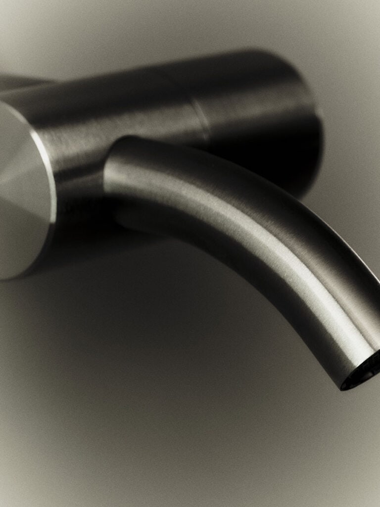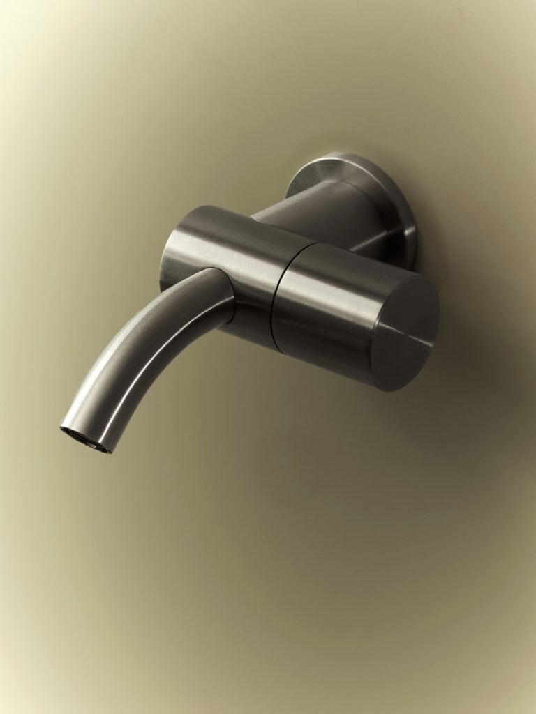 Miscelatore progressivo a parete con bocca erogazione integrata.