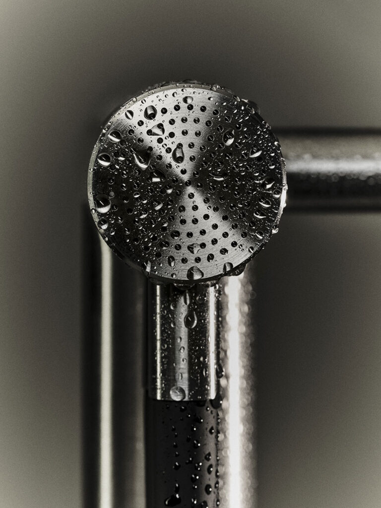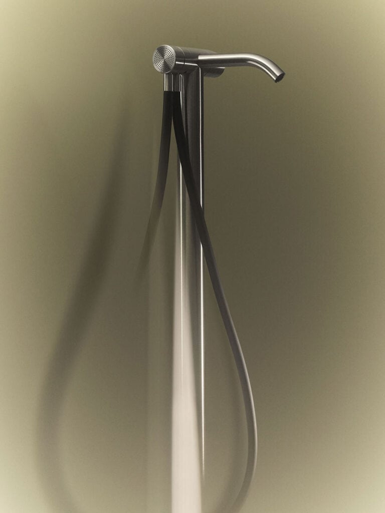 Miscelatore alta portata a colonna per vasca con kit doccia.