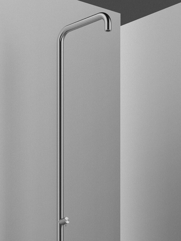 Colonna doccia con getto a pioggia e miscelatore idroprogressivo.