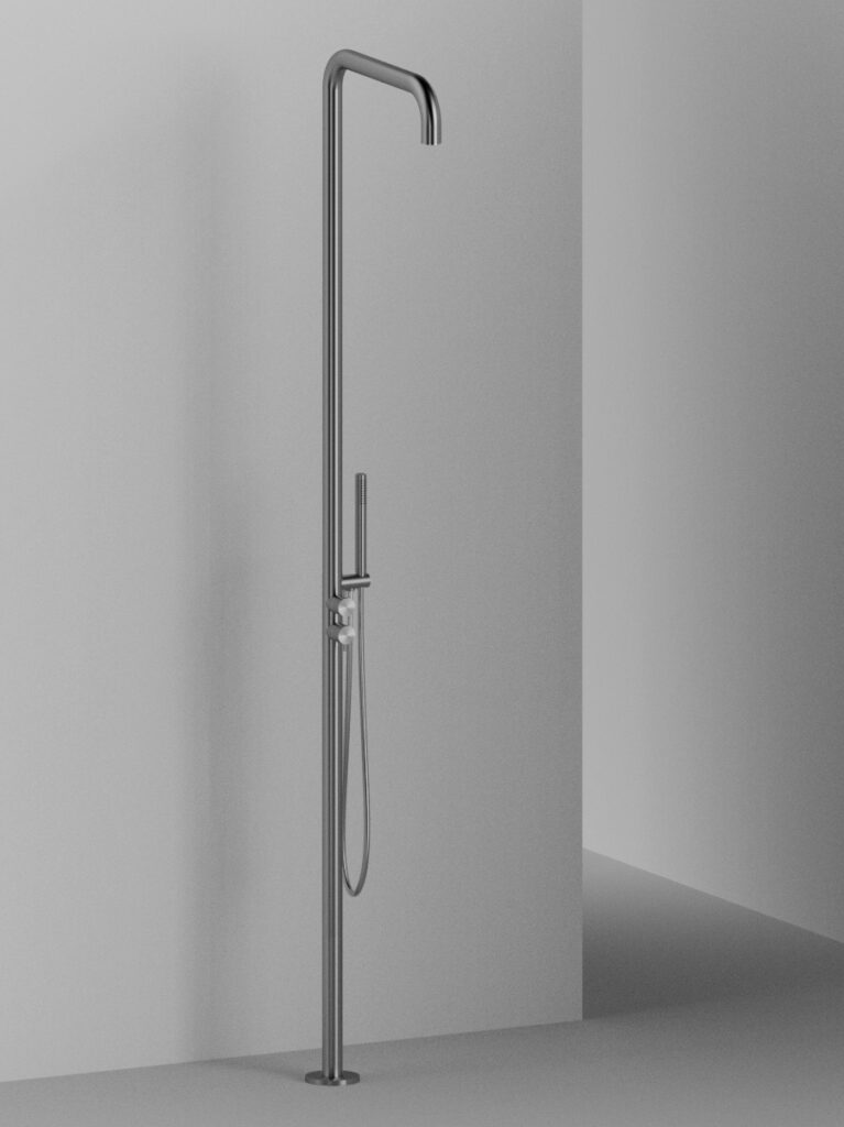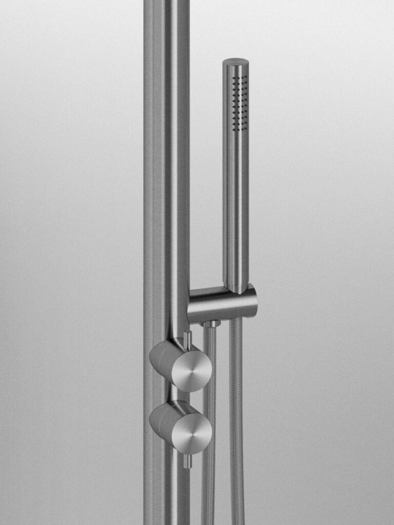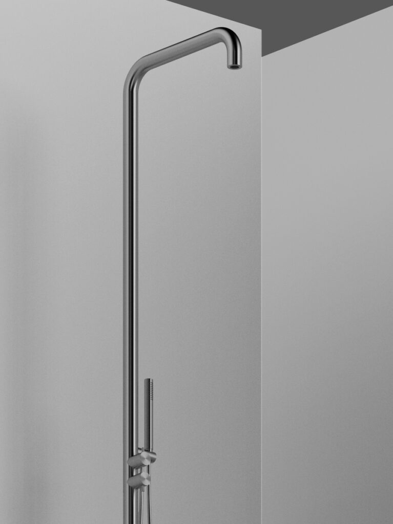 Colonna doccia con getto a pioggia, miscelatore idroprogressivo, doccetta e deviatore.