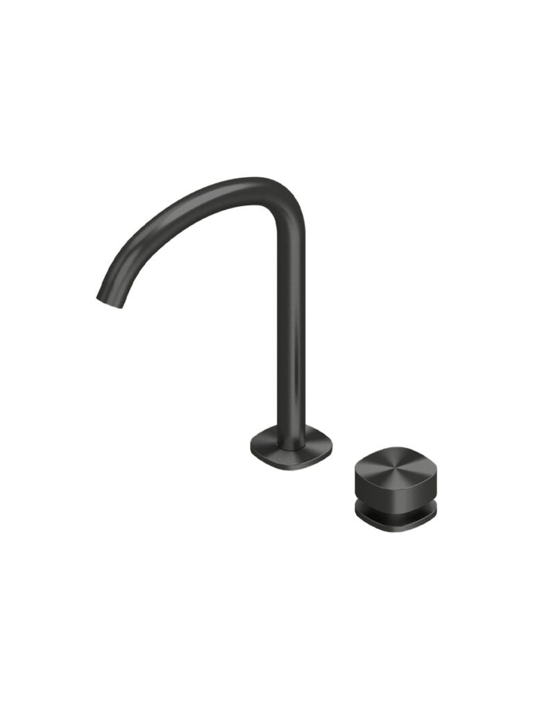 Gruppo miscelatore tradizionale due fori a piano con bocca di erogazione girevole.