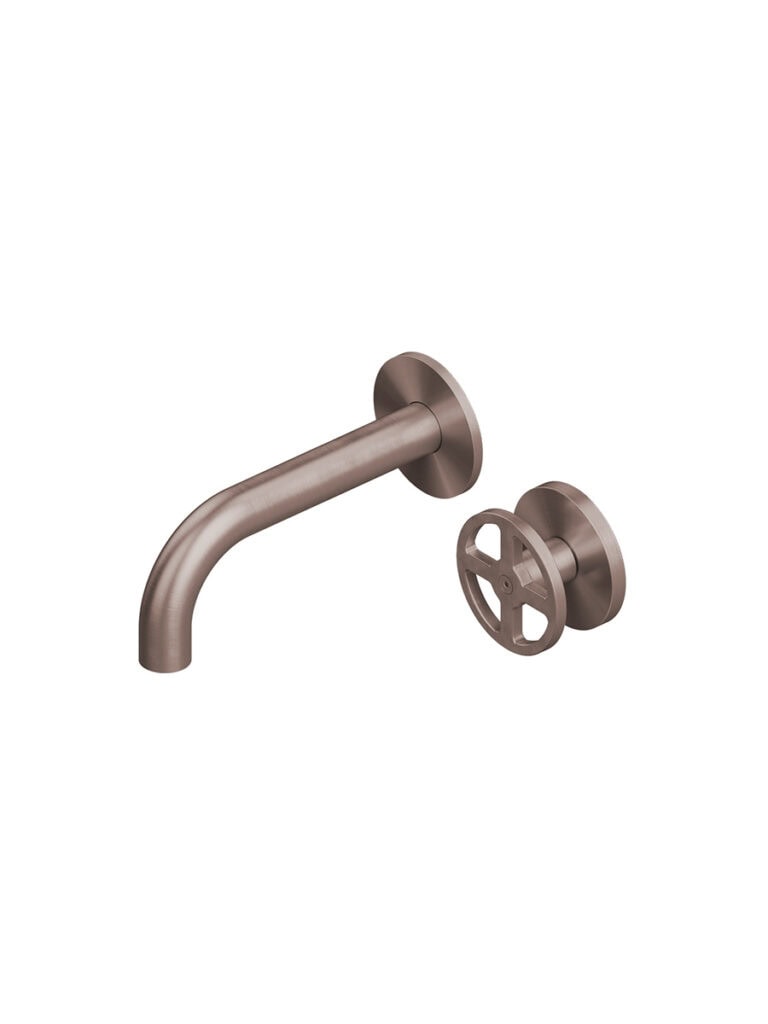 Miscelatore idroprogressivo a parete con bocca di erogazione.