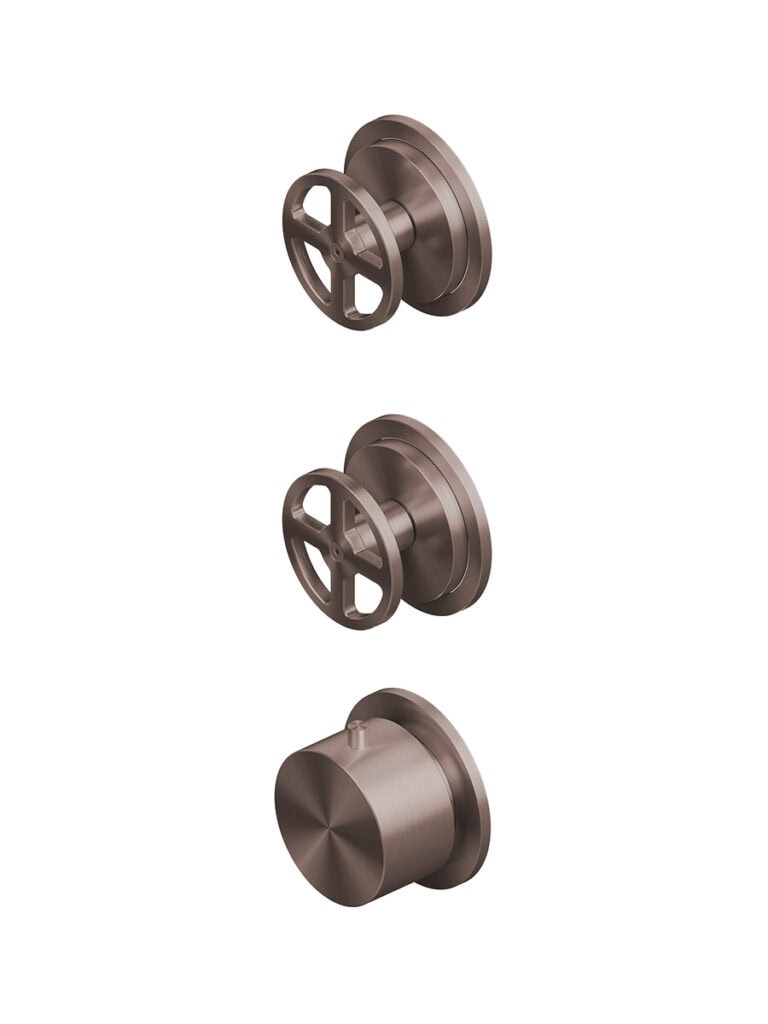 Gruppo miscelatore termostatico da 3/4 con 2 rubinetti d’arresto.