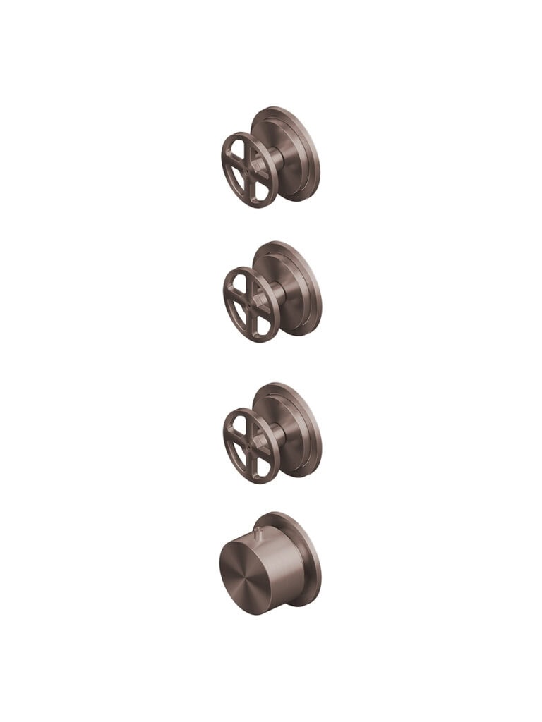 Gruppo miscelatore termostatico da 3/4 con 3 rubinetti d’arresto.