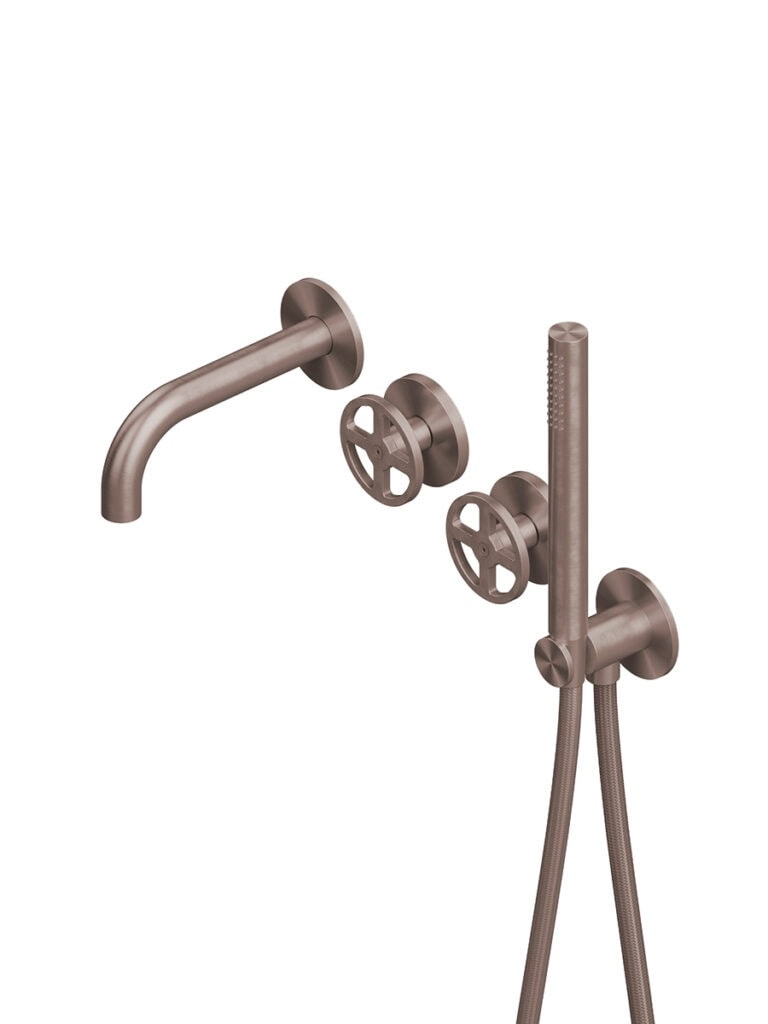 Gruppo 2 miscelatori idroprogressivi a parete con kit doccia e bocca.