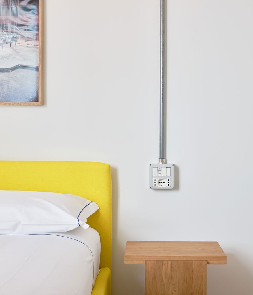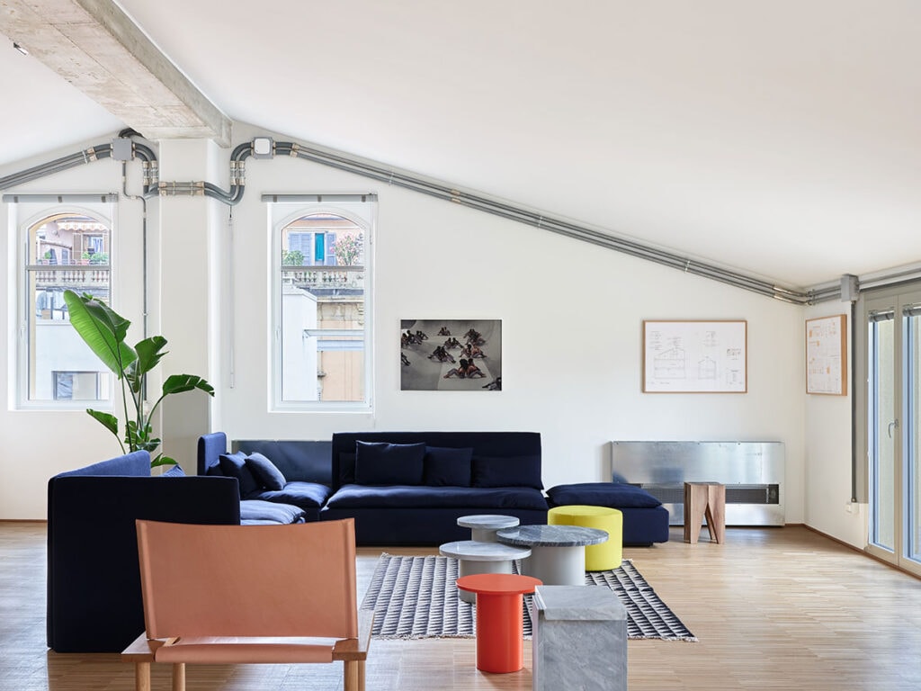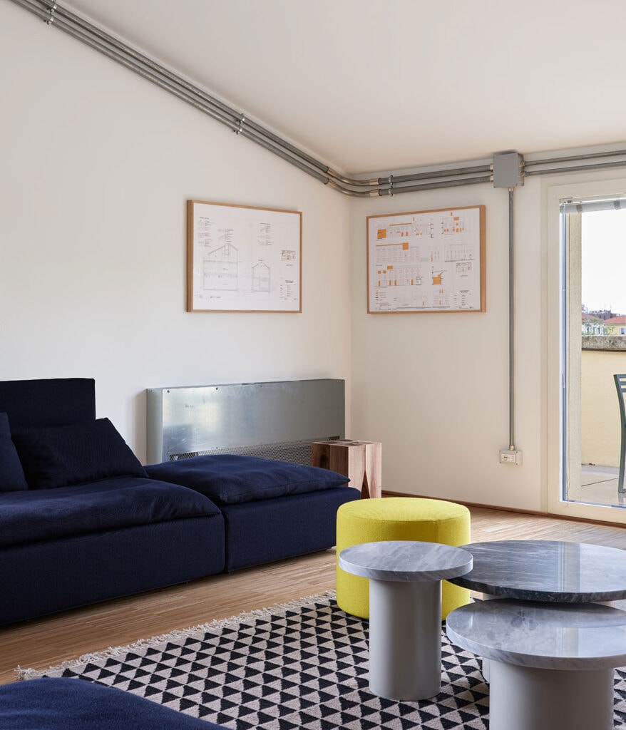 Nell’edificio adiacente, nove loft residenziali progettati da Andrea Caputo offrono sistemazioni a breve termine che variano dai 45 ai 170 metri quadrati. L’architetto — fondatore dello studio milanese noto per i suoi progetti di recupero e per iniziative come Dropcity, il futuro centro per l’architettura e il design situato sotto la Stazione Centrale di Milano — ha concepito spazi flessibili e contemporanei, dotati di ogni comfort.