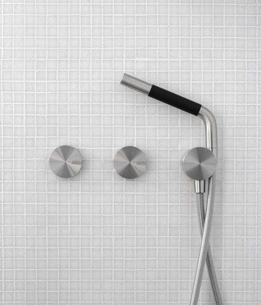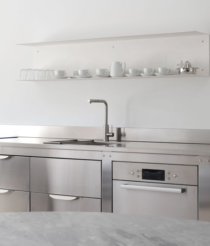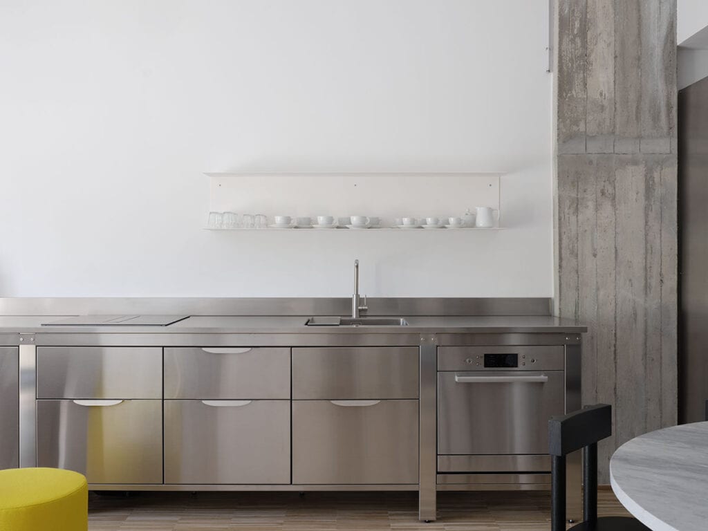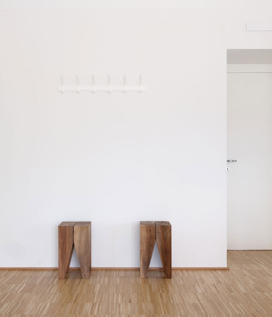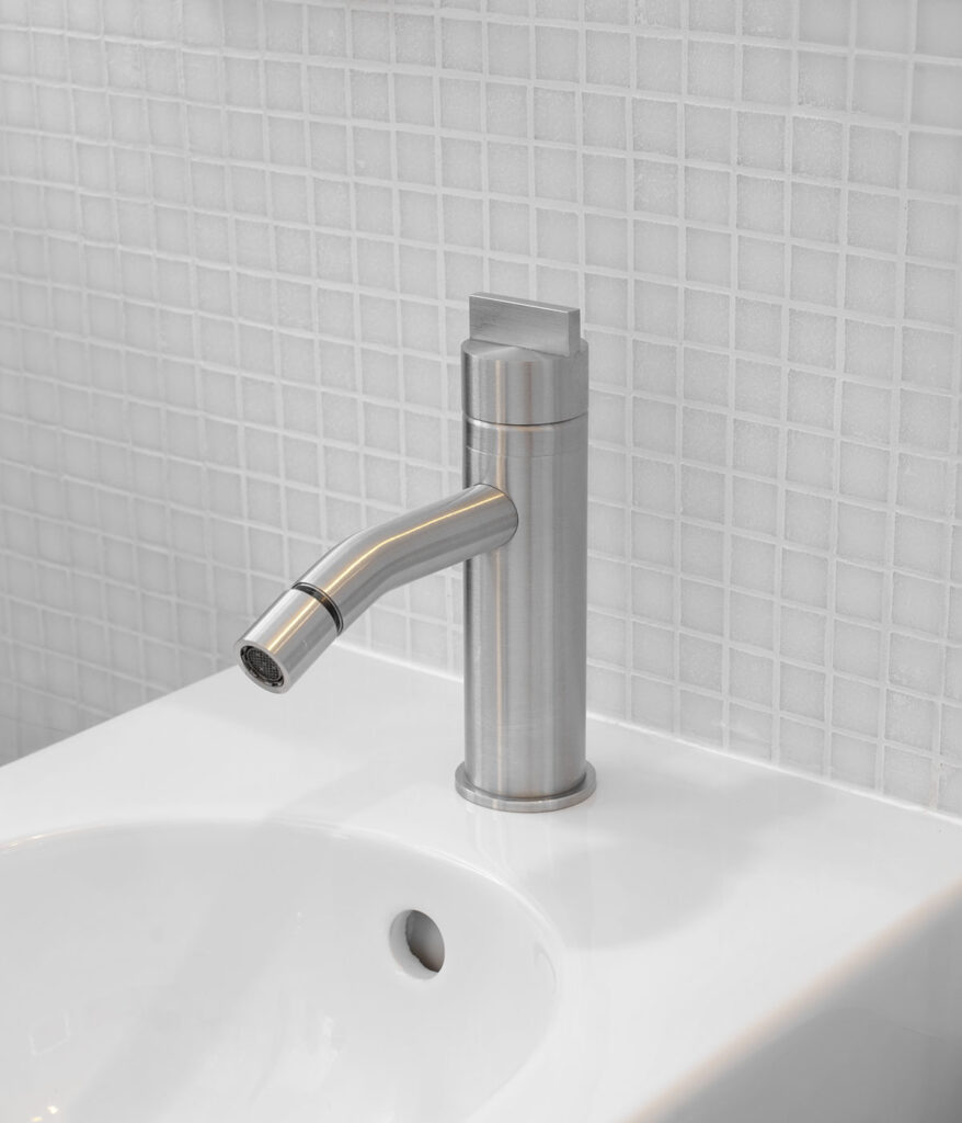 Ogni appartamento presenta una zona giorno open space, una cucina completa realizzata da Very Simple Kitchen con il miscelatore estraibile art. 669 di QuadroDesign, e arredi firmati e15, apprezzati per le forme essenziali e la lavorazione in legno massello. Il layout si completa con una camera da letto accogliente e un bagno moderno, dove sono installate le linee essenziali e architettoniche della serie Q, disegnata da Studio Adolini.