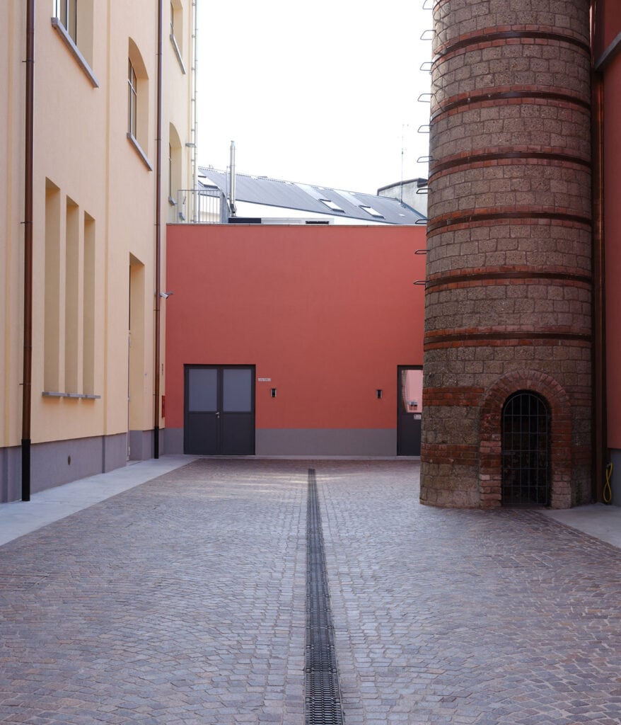 Originariamente nato come laboratorio per la lavorazione della gomma, il complesso si è trasformato nel tempo ospitando diverse attività, fino alla sua riconversione in BasicVillage Milano, il secondo campus urbano del gruppo dopo quello di Torino. Articolato in due edifici collegati da una corte interna — tra via dell’Aprica 12 e via Bernina 1C — il sito di 4.500 m² combina spazi di lavoro, ospitalità e residenze in un dialogo continuo tra passato industriale e presente contemporaneo.