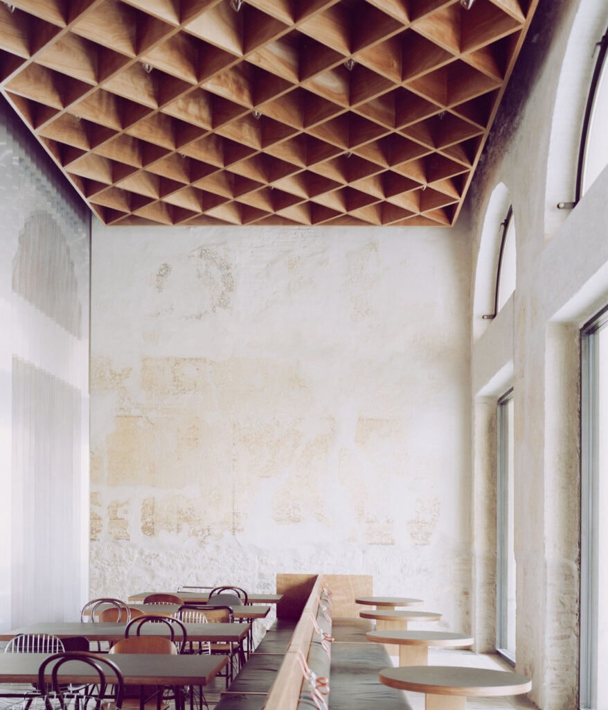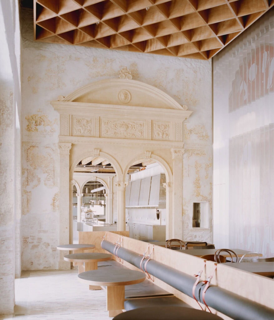 Il Caffè Nazionale progettato da AMAA introietta la città: il recupero del locale storico di Arzignano è un’opera composita che si nutre degli elementi e delle memorie esistenti per dare vita a un brillante palinsesto vivente.  “Il progetto di Caffè Nazionale è un’opera vivente che si impossessa dei materiali esistenti e delle loro storie per dare luogo a una nuova architettura”, hanno affermato gli architetti di AMAA. “Un primo delicato intervento ha permesso la liberazione dello spazio dalle superfetazioni e statificazioni incongrue che nel corso dei decenni avevano occultato la materia storica. Si è trattato di un vero e proprio processo di scoperta che ha indirizzato i successivi momenti del progetto”.